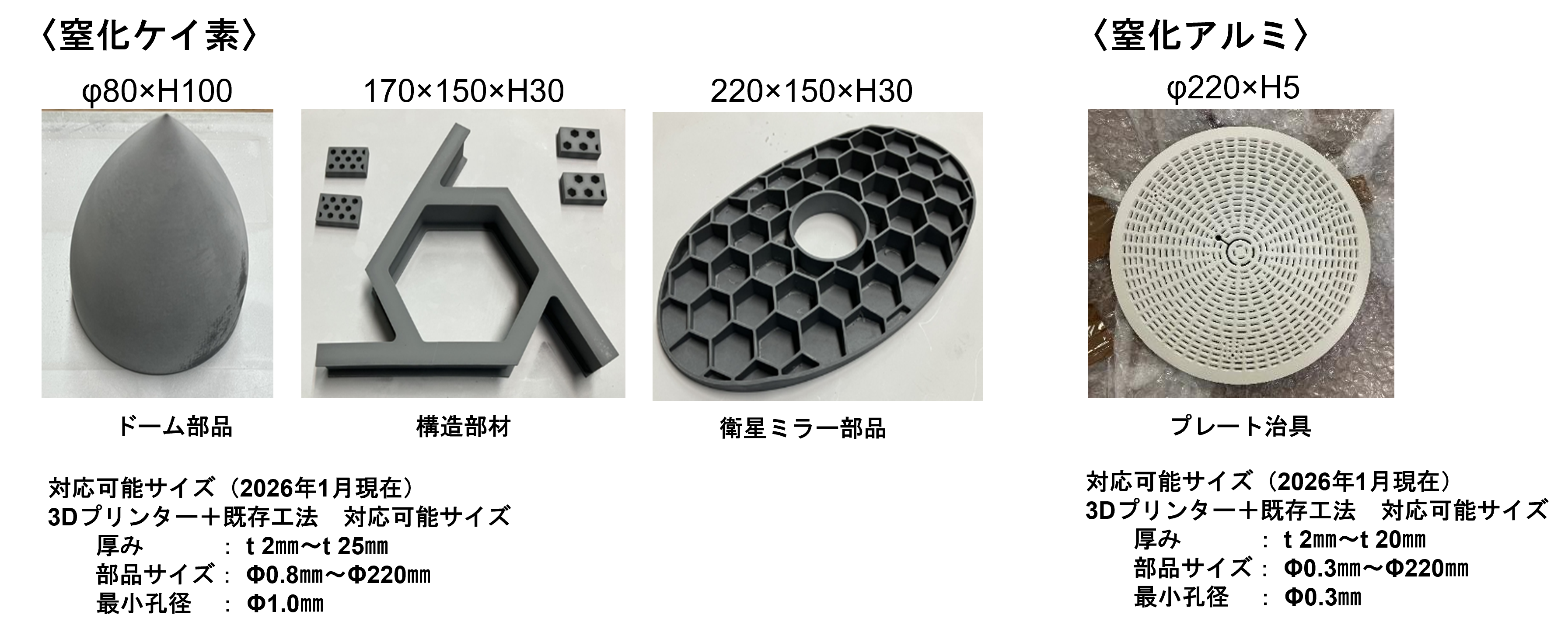 取扱い材種の一つである窒化ケイ素は高強度・高硬度・高靭性・耐熱衝撃性に優れ、航空・宇宙分野部品で採用され、医療系への適応拡大も期待されています。窒化アルミは材料の持つ高熱伝導率と電気絶縁性を持ち、電子部品の放熱基板や半導体製造装置部品への拡大が期待されます。