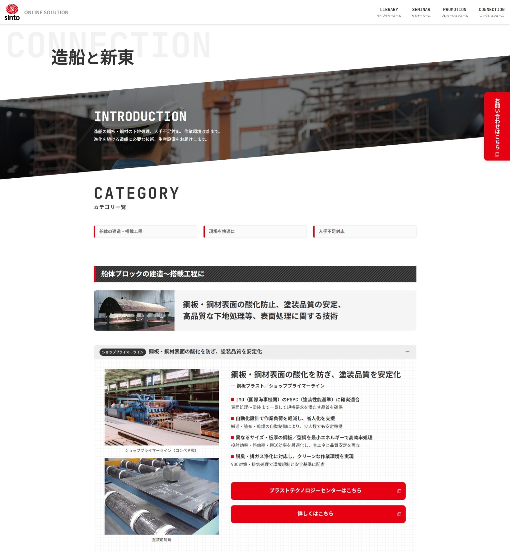 新東工業WEBサイト オンラインソリューションサイト 造船と新東