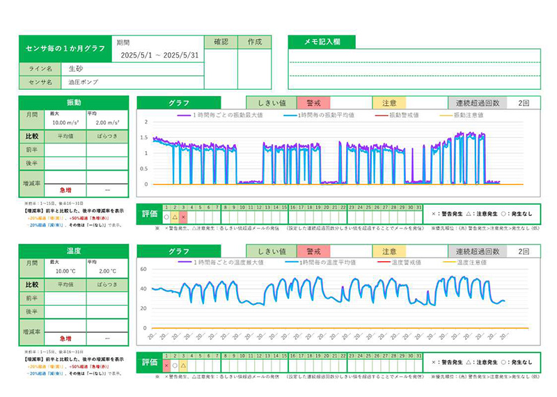 見える化や分析、異常のお知らせ方法も様々な出力をご用意。