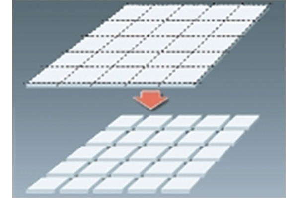 マスクを用いた噴射加工のため、大面積でも異なる形状を一括で加工可能です。